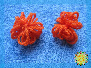 8- Faça pompons para o cabelo, enrolando a lã entre os dedos;